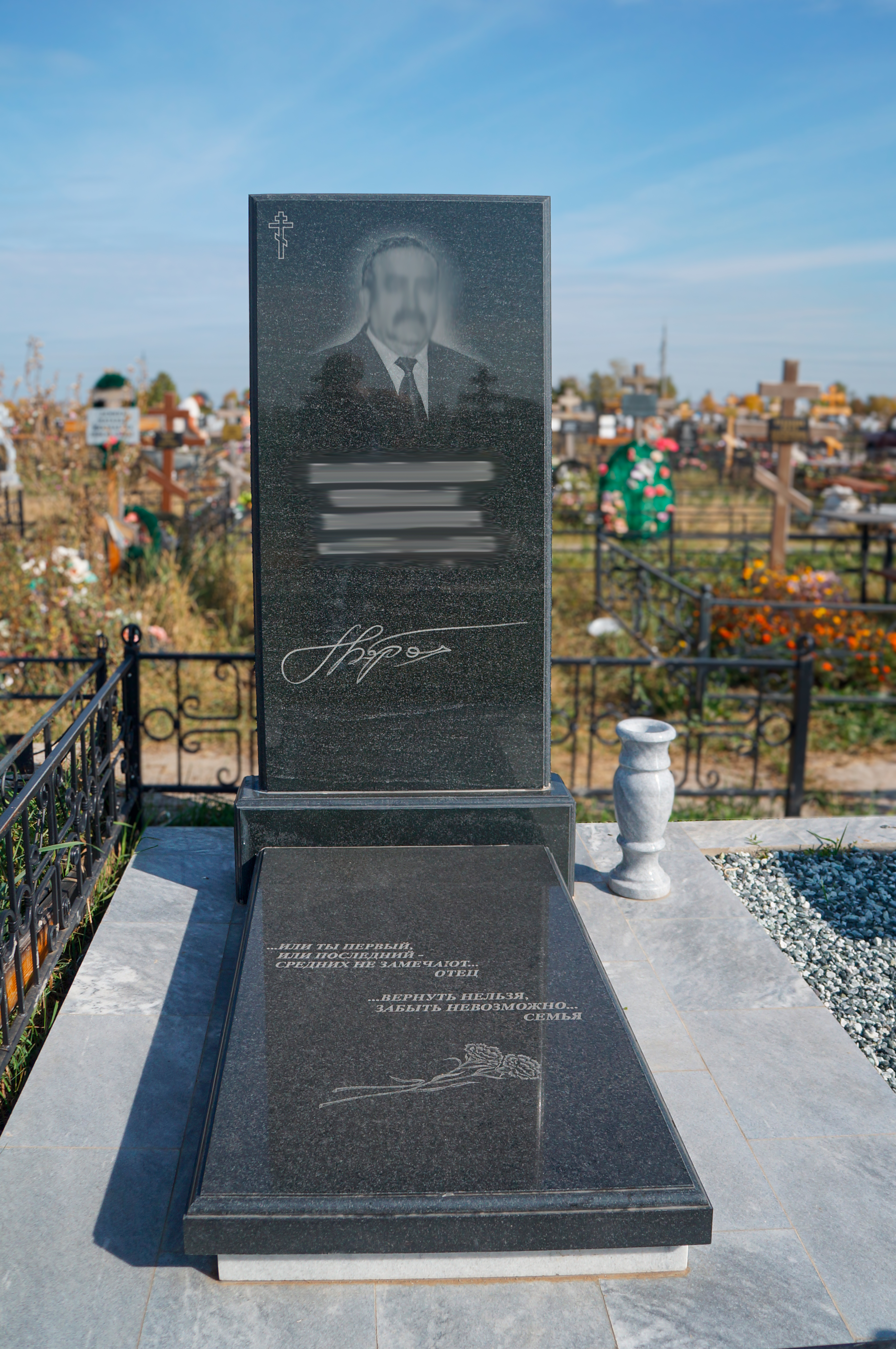 Качественная установка, гарантия и уход за захоронением помогут сохранить сам памятник, а рассказать будущим поколениям об ушедшем поможет дополнительная гравировка и декоративные оформление, которое вы подбираете по своим предпочтениям.