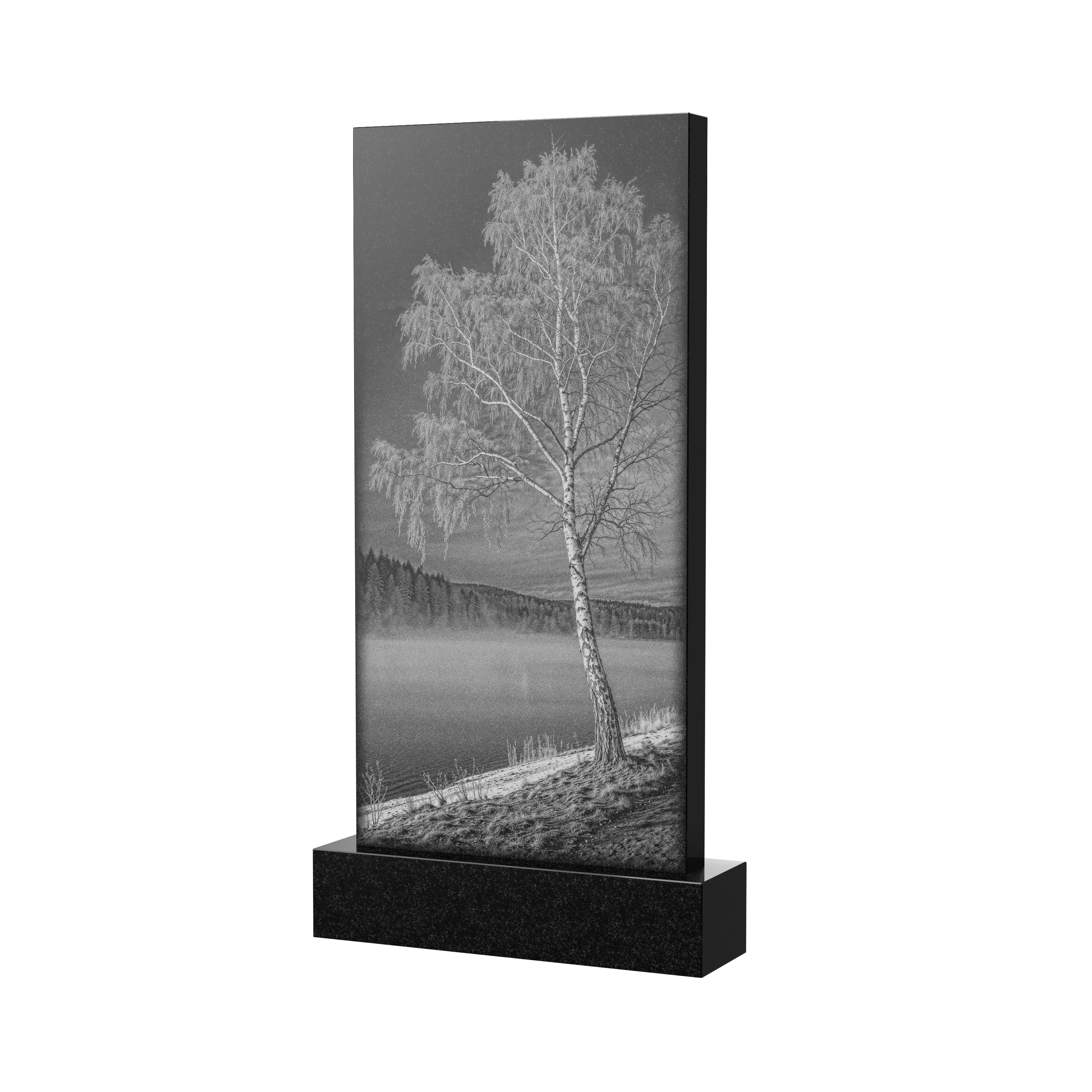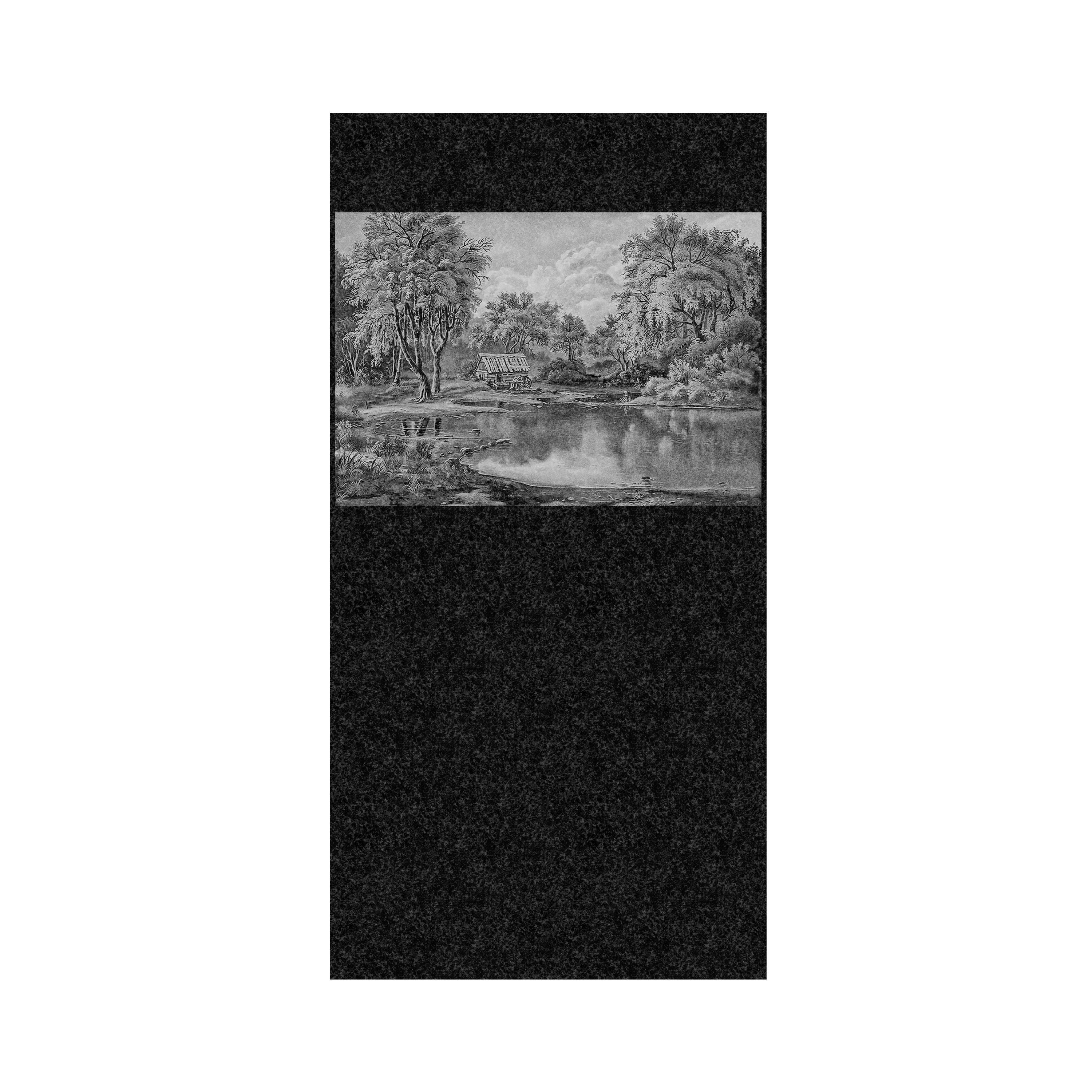 На чёрный гранит наносится контрастное светлое изображение. Чаще всего оформление гранитных памятников на кладбище заказывают на религиозную тему: