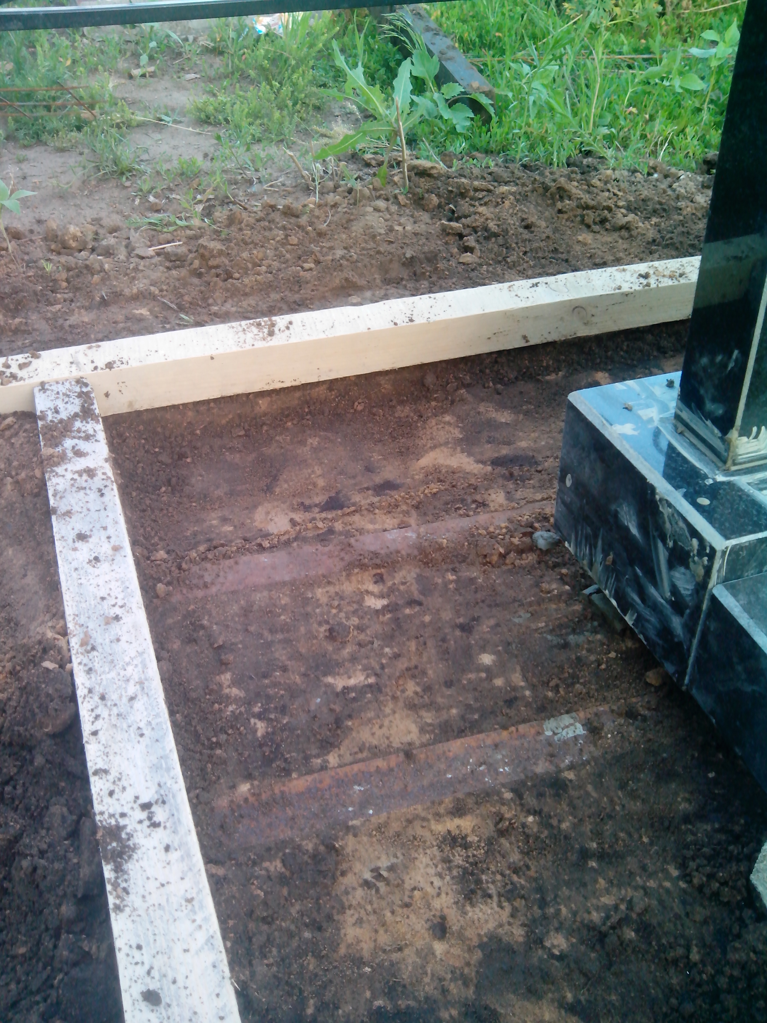 Установка опалубки — из досок создается форма для заливки фундамента, соответствующая размерам памятника и цветника;